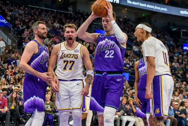 湖人连续获得罚球机会,东契奇撤步三分命中后,湖人领先13分。但此后爵士在马卡宁和乔治带领下顽强追上比分。最后1分钟,马卡宁的三分球追到只差1分,里夫斯三分打铁,马卡宁中投不中给机会,东契奇两罚中一,爵士有绝杀机会。最后6秒,爵士连续三分打铁,最终湖人108-106惊险击败爵士,迎来四连胜。