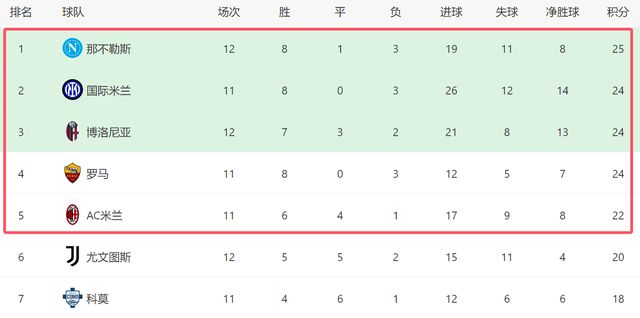 由于那不勒斯拿到了3分,意甲榜首也再度易主。截至目前,那不勒斯已经反超少赛1场的国米,再度在意甲积分榜登顶。本赛季,意甲争冠非常激烈,目前排名前5的球队,差距只有3分,接下来国米、罗马和AC米兰这3大强队,都有机会反超那不勒斯,成为意甲新的领头羊。